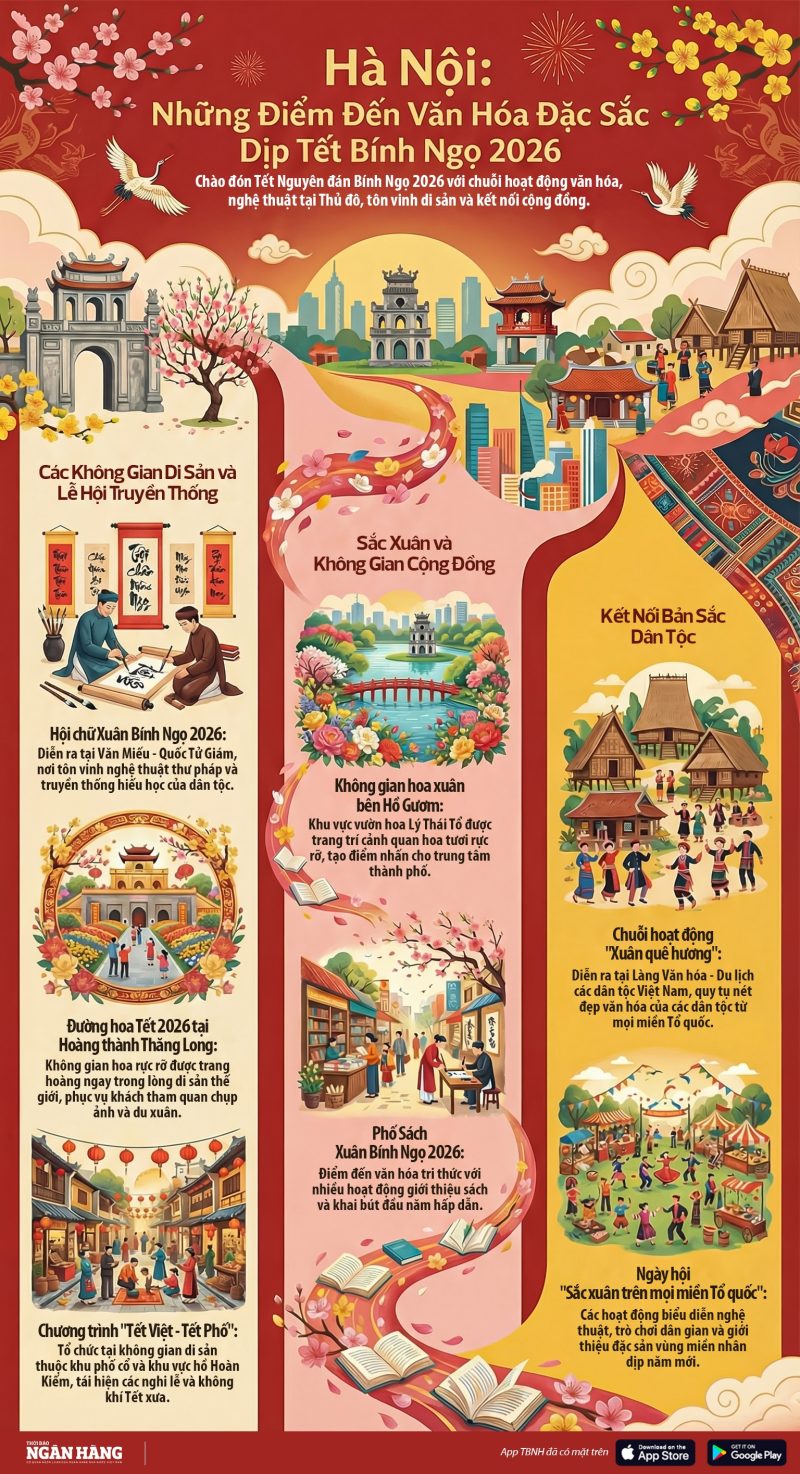 Chào đón Tết Nguyên đán – Xuân Bính Ngọ 2026, thủ đô Hà Nội tổ chức nhiều hoạt động văn hóa, nghệ thuật đặc sắc, mở ra những không gian và điểm đến du Xuân hấp dẫn cho du khách trong và ngoài nước.